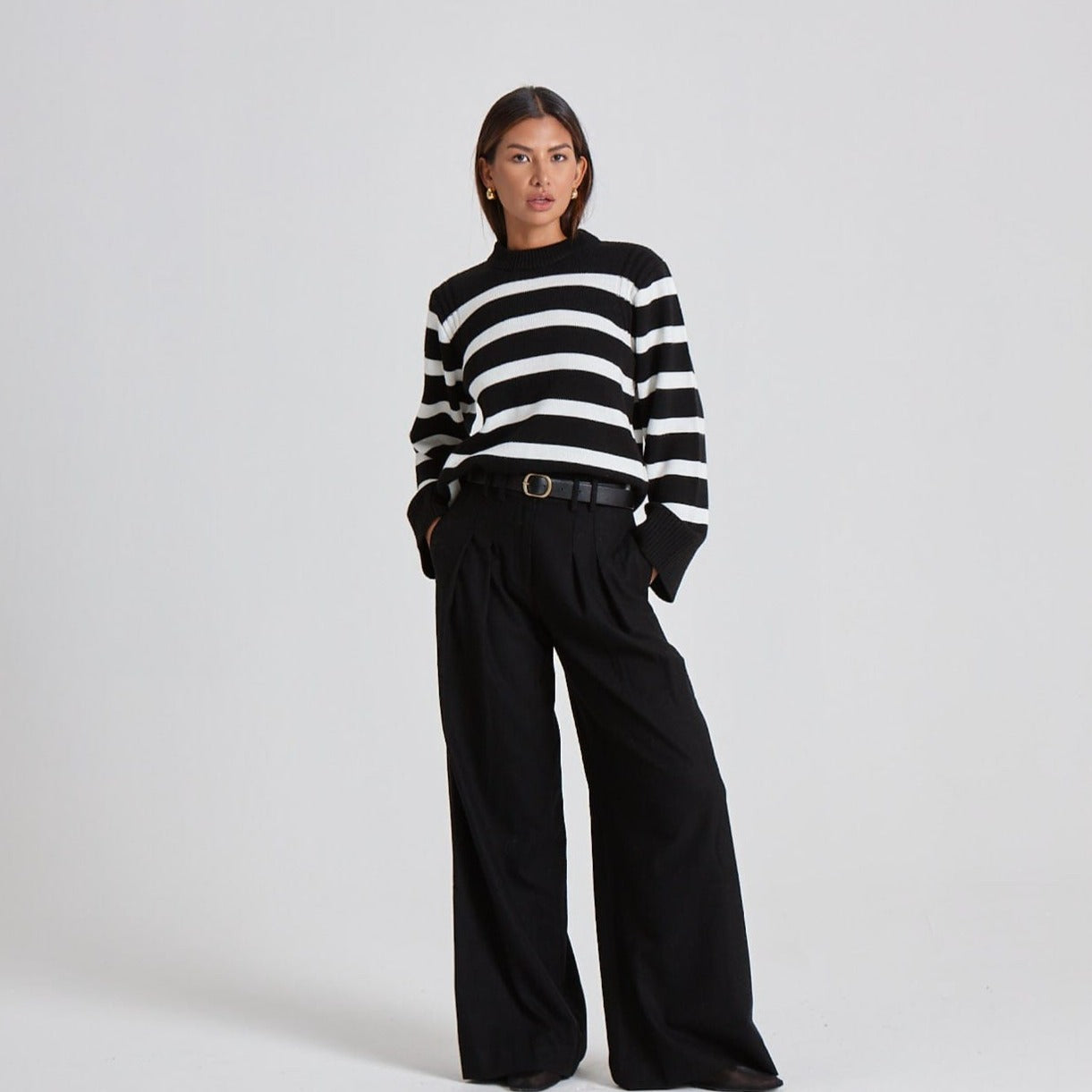 DER ULTIMATIVE STREIFEN-RUNDHALSAUSSCHNITT - SCHWARZ / WEISS
